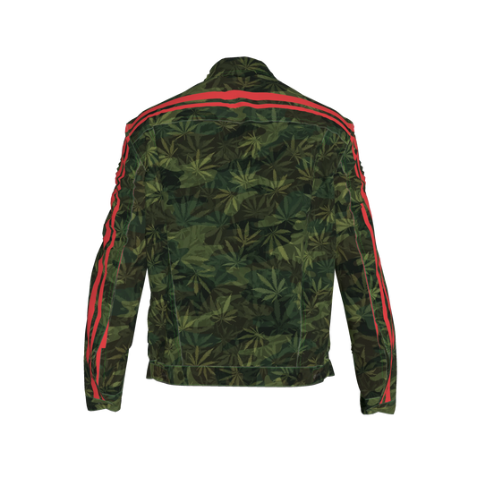 🌿Green Leaf Red MotoStripe™ Men's Jean Jacket