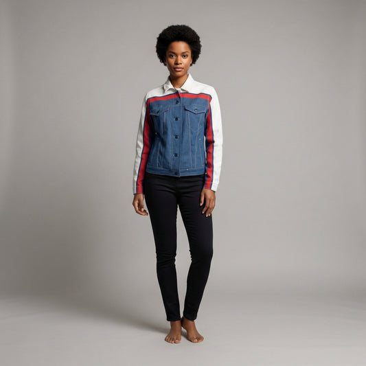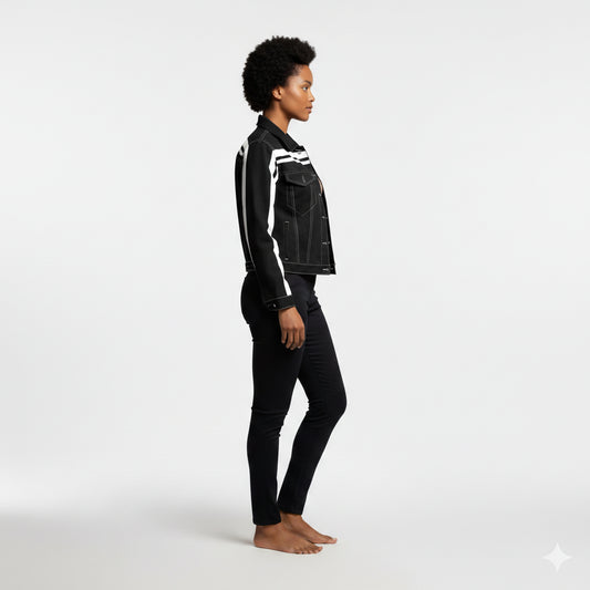 Black + White MotoStripe™ Women's Jean Jacket ⚫⚪ 🏁