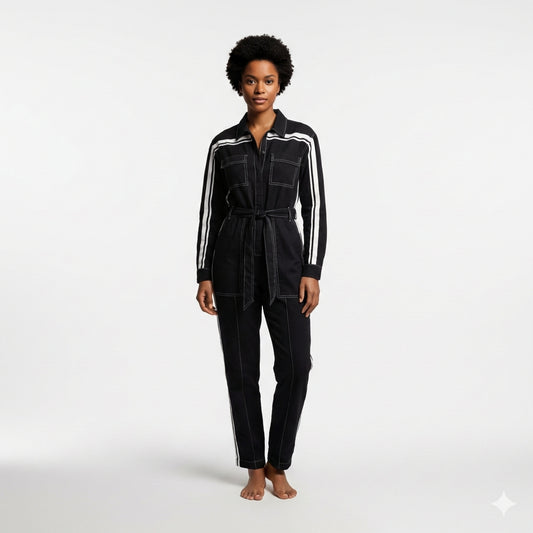 Black & White MotoStripe™ Jumpsuit Button Up