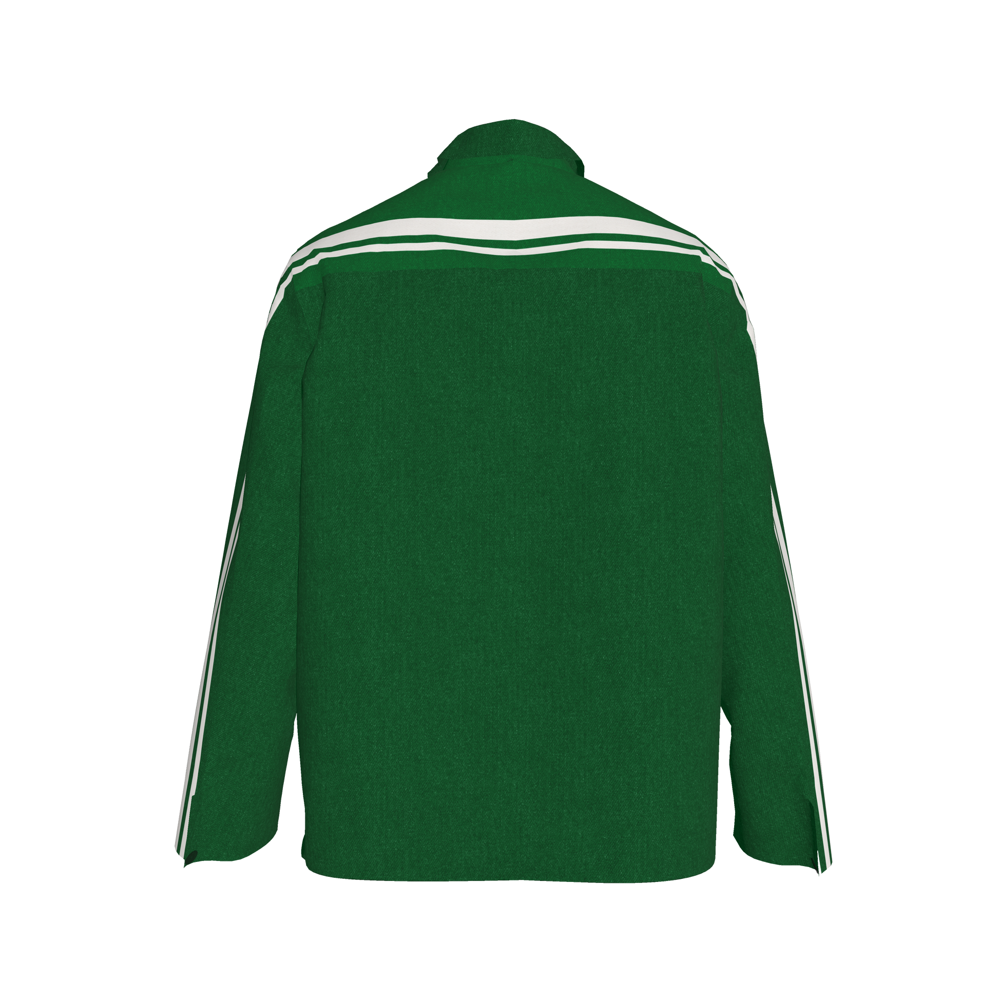 Unlike the brighter Green Team version, this coat leans into more subdued shades: a deep, classic green paired with softer forest color. Off-white MotoStripe™ bands wrap the chest, back, and arms—still bold, but with a vintage, lived-in feel that keeps the look grounded.