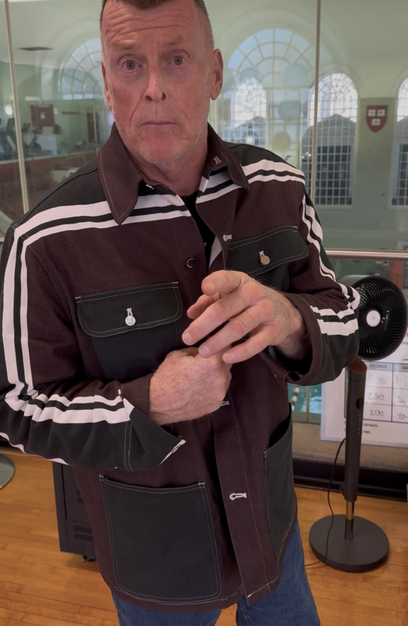 Digitally printed with a bold dark crimson and black base, a white MotoStripe™ ⚪ cuts across the chest, back, and sleeves 🏁, giving a sporty, graphic edge while keeping the coat grounded in classic workwear energy. White topstitching 🧵 adds contrast and the signature ADG.BOSTON lift, while gunmetal buttons ⚙️ provide a sleek, industrial finish.