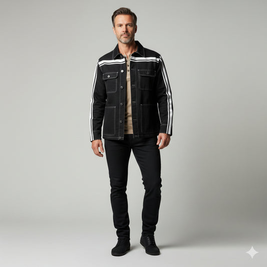 Gold & White MotoStripe™ Black Chore Coat ⚫✨🏈