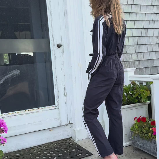 The Black + White Lightweight MotoStripe™ Jumpsuit – Effortless Cool with a Sporty Twist 🖤🤍🏁